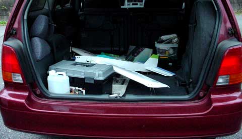 後席を倒して積み込みました。