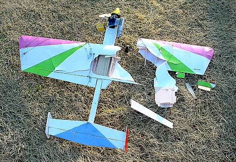 写真では見えないけれど、主翼もベリベリだし、ニードルも曲がっている。