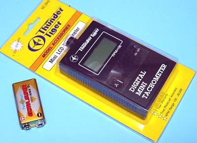 ペラの回転計。蛍光灯に向けて、関東なら3000回転(50Hzだから?)と