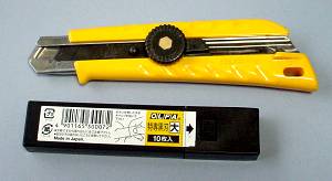 カッターの刃は、オルファの「特選黒刃」を使ってます。